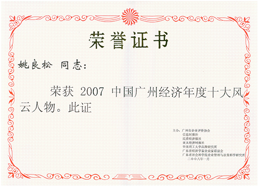 ● 姚良松董事長當(dāng)選“2006年廣東十大經(jīng)濟(jì)風(fēng)云人物”。