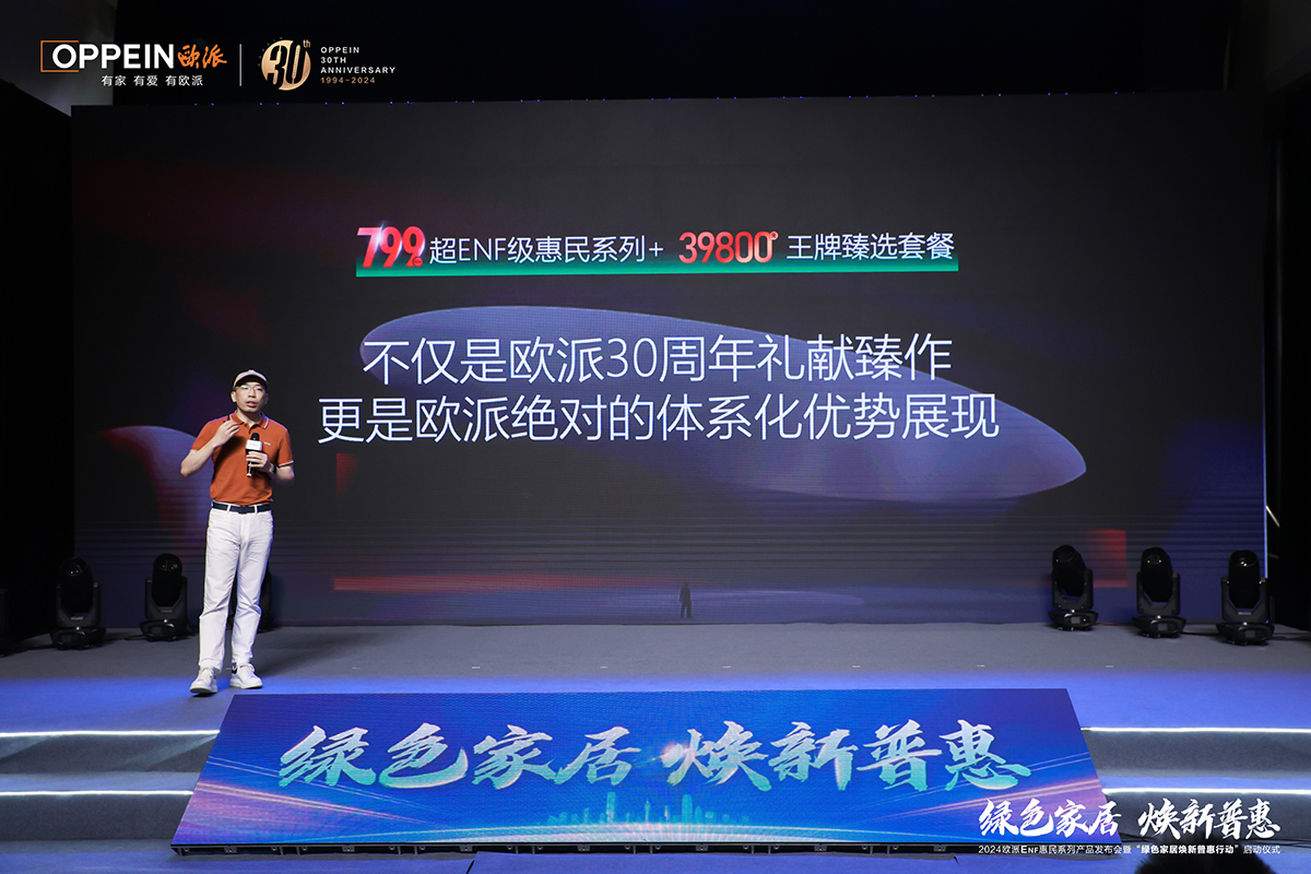 “歐派ENF惠民系列產(chǎn)品發(fā)布會”是此次活動的一大亮點。歐派營銷第一事業(yè)部總經(jīng)理楊冬先生在發(fā)布會上深入闡述了歐派如何將國家戰(zhàn)略和家居市場需求融入到產(chǎn)品開發(fā)和市場策略中,展現(xiàn)了歐派家居在行業(yè)中的領(lǐng)導(dǎo)地位和對消費者健康的堅定承諾。