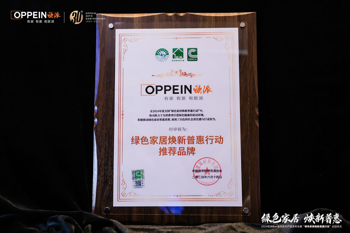 中國建筑材料流通協(xié)會會長秦占學(xué)在發(fā)布會上致辭,他認(rèn)為,密集的政策措施出臺,代表著提升國民品質(zhì)生活的健康中國、綠色中國已升級為國家戰(zhàn)略!歐派家居緊抓國家戰(zhàn)略的春風(fēng),以“以舊換新”和“家裝廚衛(wèi)煥新行動”為契機,積極布局綠色家居煥新領(lǐng)域,被審核并確定為“綠色家居煥新普惠行動推薦品牌”。根據(jù)商務(wù)部2024"消費促進年"整體工作部署,歐派家居提報的“綠色家居煥新普惠行動"活動已進入《2024年重點消費促進活動安排表》。