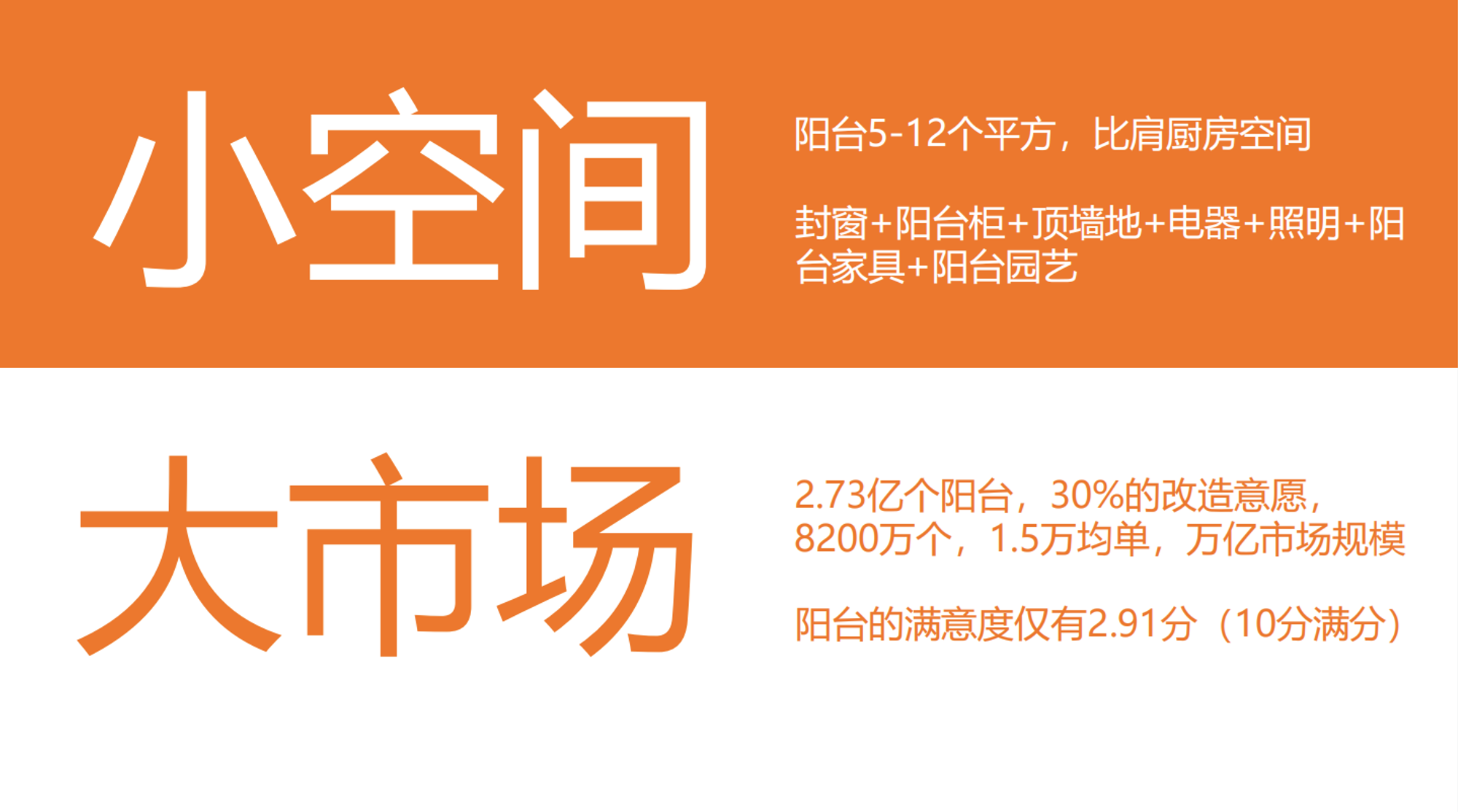 當(dāng)下的陽(yáng)臺(tái)定制行業(yè),幾乎沒(méi)有專業(yè)做陽(yáng)臺(tái)裝修的成熟的大品牌,一旦進(jìn)入陽(yáng)臺(tái)整裝市場(chǎng),大家都是從 0 到 1 發(fā)展,對(duì)所有人來(lái)說(shuō)都是一個(gè)新的起點(diǎn)。